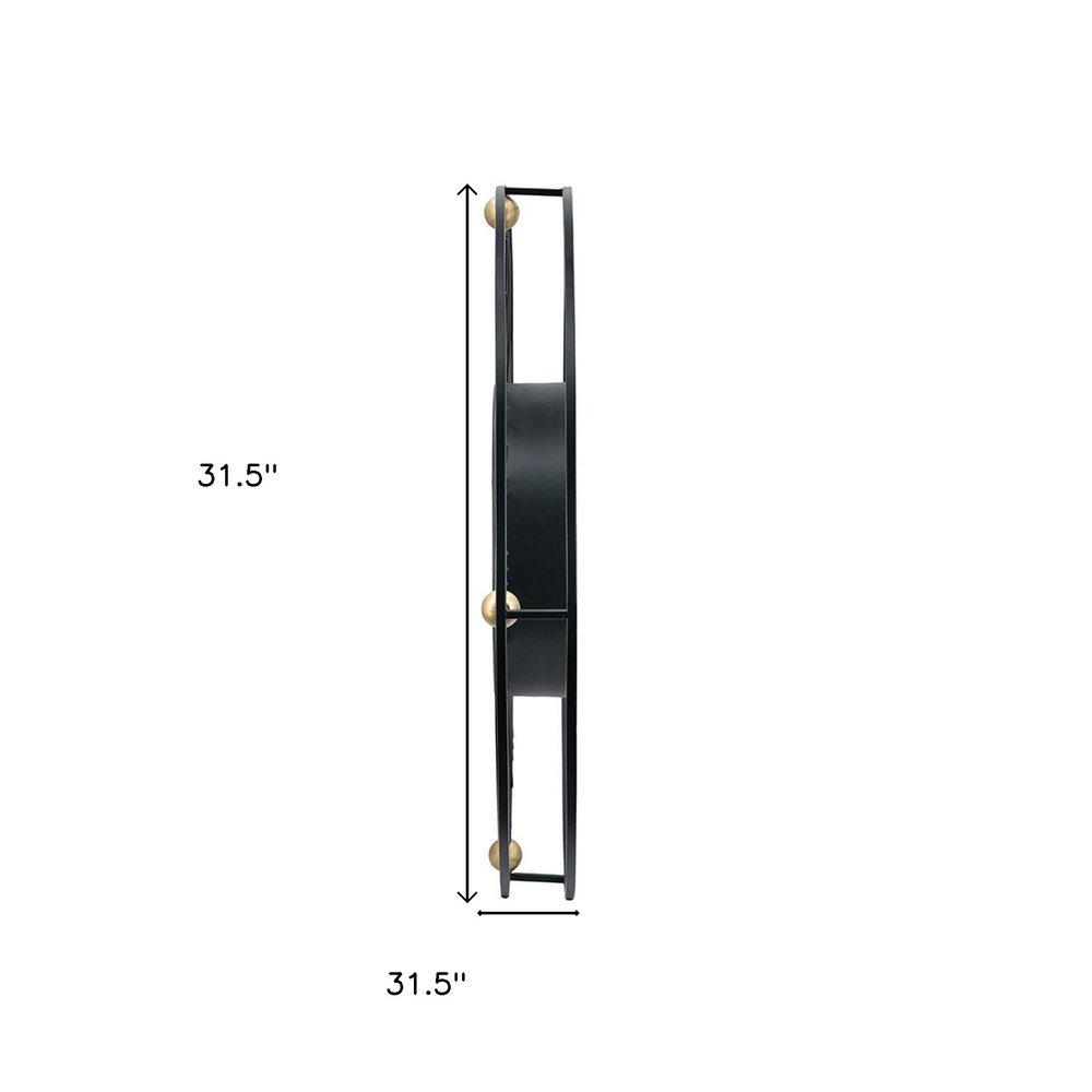 This 32-inch circle black and gold metal and glass analog exposed gear wall clock includes three moving hands on the face that move smoothly to indicate the hour, minute and seconds. The circle shape of this clock will bring a sense of wholeness to your home. The clock face not only looks good but is beautiful and uniquely made from glass. Stay on track with this elegant and efficient clock. With its unique design and practical purpose, this clock will add flair to your home while also acting as an essential tool. 31.5-inch H x 31.5-inch W x 3.1-inch D