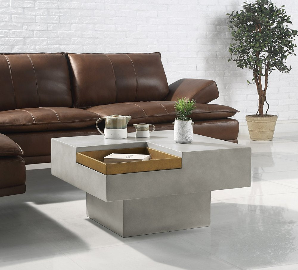 Make your living room or family room really stand out with this 32-inch gray cement square distressed pedestal coffee table. This table features quality construction from cement and an updated monotone color scheme with gray as the main color on both the top and the base. Complete with a purposefully distressed finish, this table has an aged, vintage, and rustic feel. This unique tray top shape of the table adds dimension and extra storage. This square table features a fresh and stylish shape to give your room a visually pleasing accent. It has an attractive design that will definitely breathe some fresh air into your interior. 17-inch h x 32-inch w x 32-inch d.