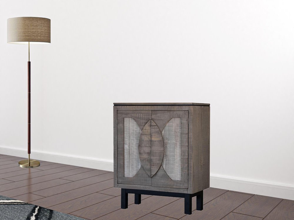 32" Gray Solid and Manufactured Wood Distressed Buffet Table