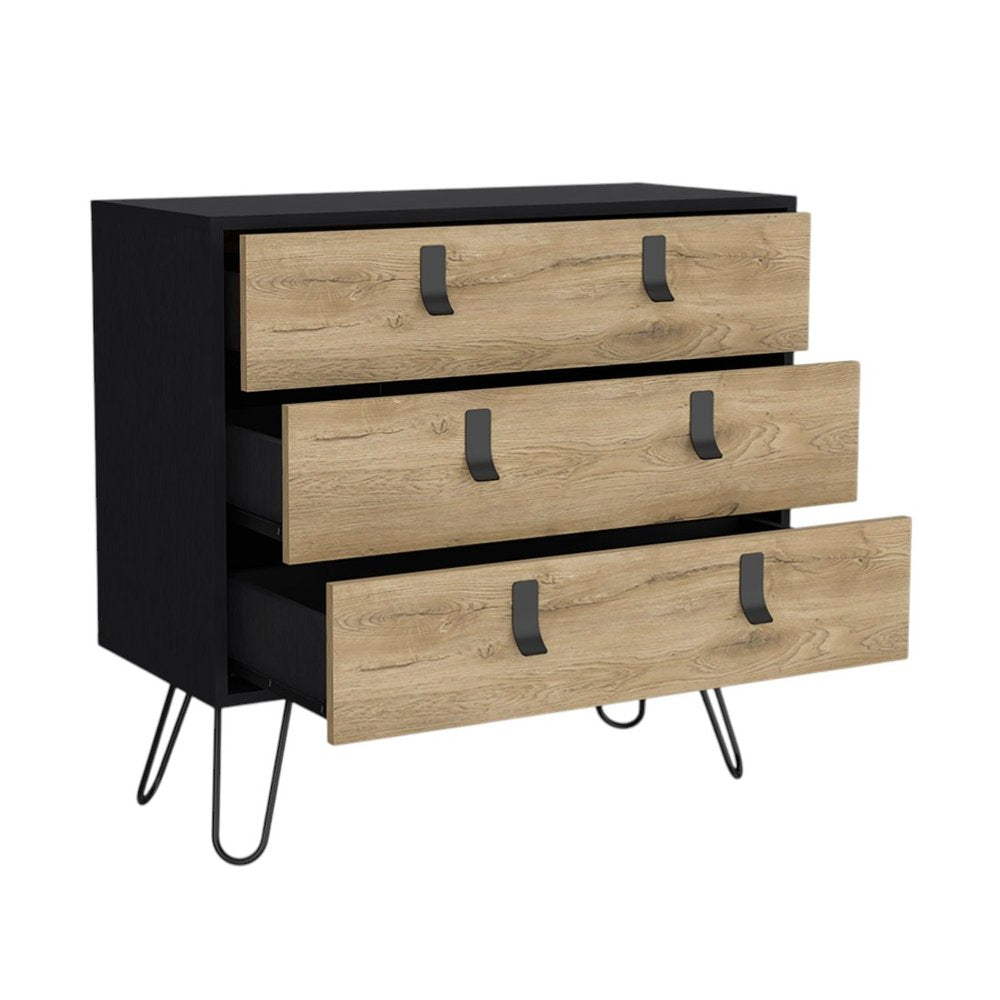 32" Natural and Black Three Drawer Dresser