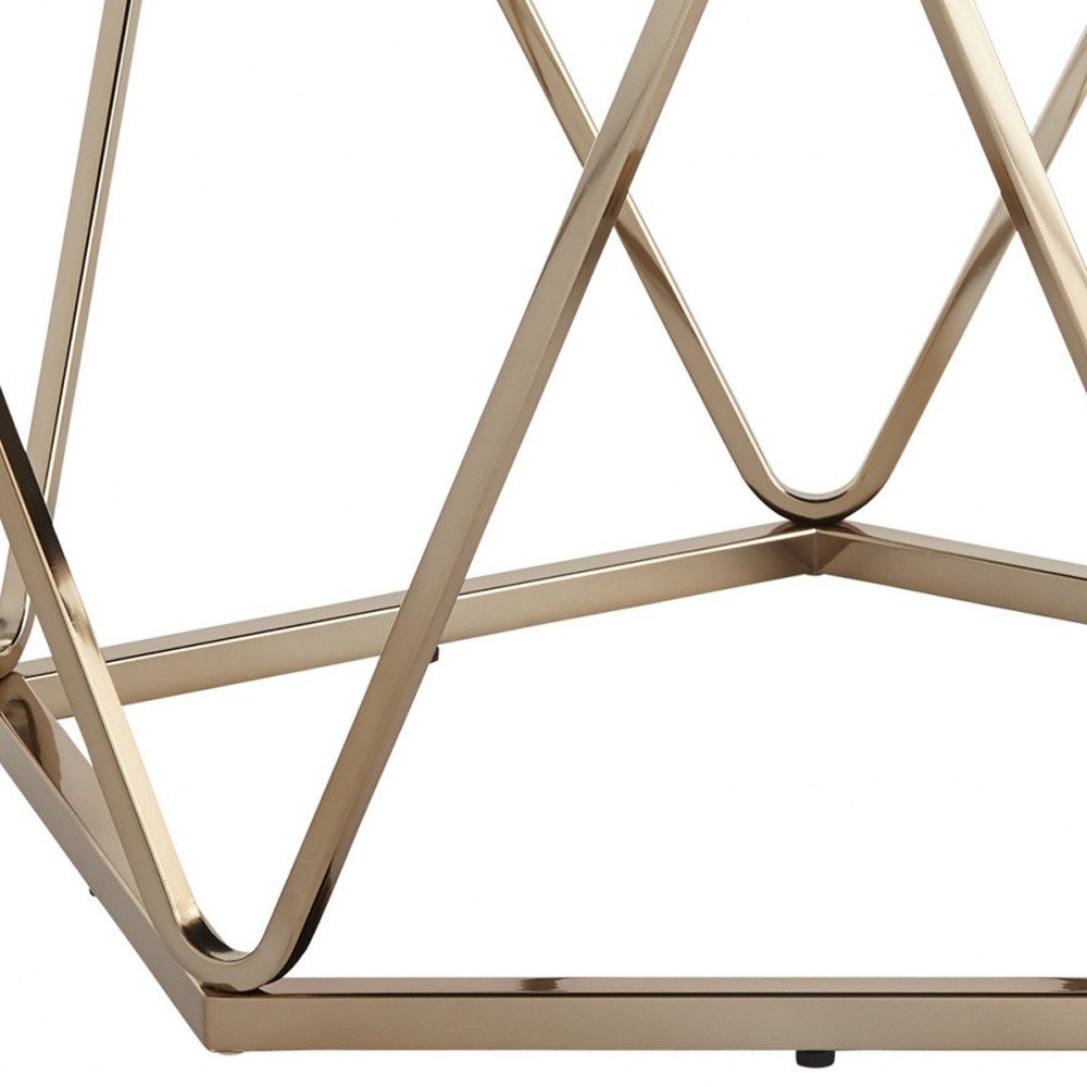 Make a statement with the 33" champagne solid manufactured wood and metal round coffee table and infuse a dash of character and personality into your space. This multi-functional coffee table is built to last from high quality marble. A solid champagne metal frame is finished off with a matching champagne solid manufactured wood table, giving this table a chic monotone look. This round table features a unique shape to give your room a visually pleasing accent. The champagne coloration throughout gives this piece an updated and refreshing look. If you're looking for something that can fit both into a living area, bedroom, or office, this coffee table is for you. This coffee table is the sturdy, reliable and stylish answer to your living room needs. 17.75" H x 33" W x 33" D