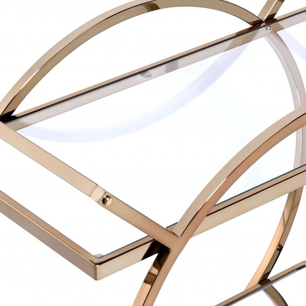 33" X 19" X 35" Champagne Metal Tube Serving Cart