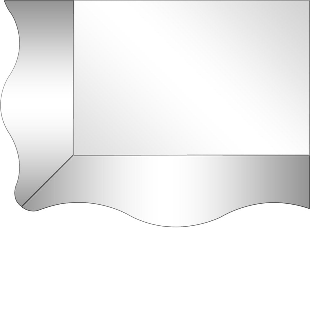 A delectable piece of furniture, this 35-inch clear novelty glass framed accent mirror is an embellishment perfect for your rooms. The novelty shaped mirror adds a nice touch of depth and texture and also makes it very practical. This frame works nicely with the full-bodied mirror in the middle. The mirror of modern style can also decorate your room and bring brightness to your living space. Its both exceptional and tasteful, and its tough as well. This mirror has the perfect length to place against your wall and will match all aesthetic. 35.38-inch H x 23.63-inch W x 0.38-inch D