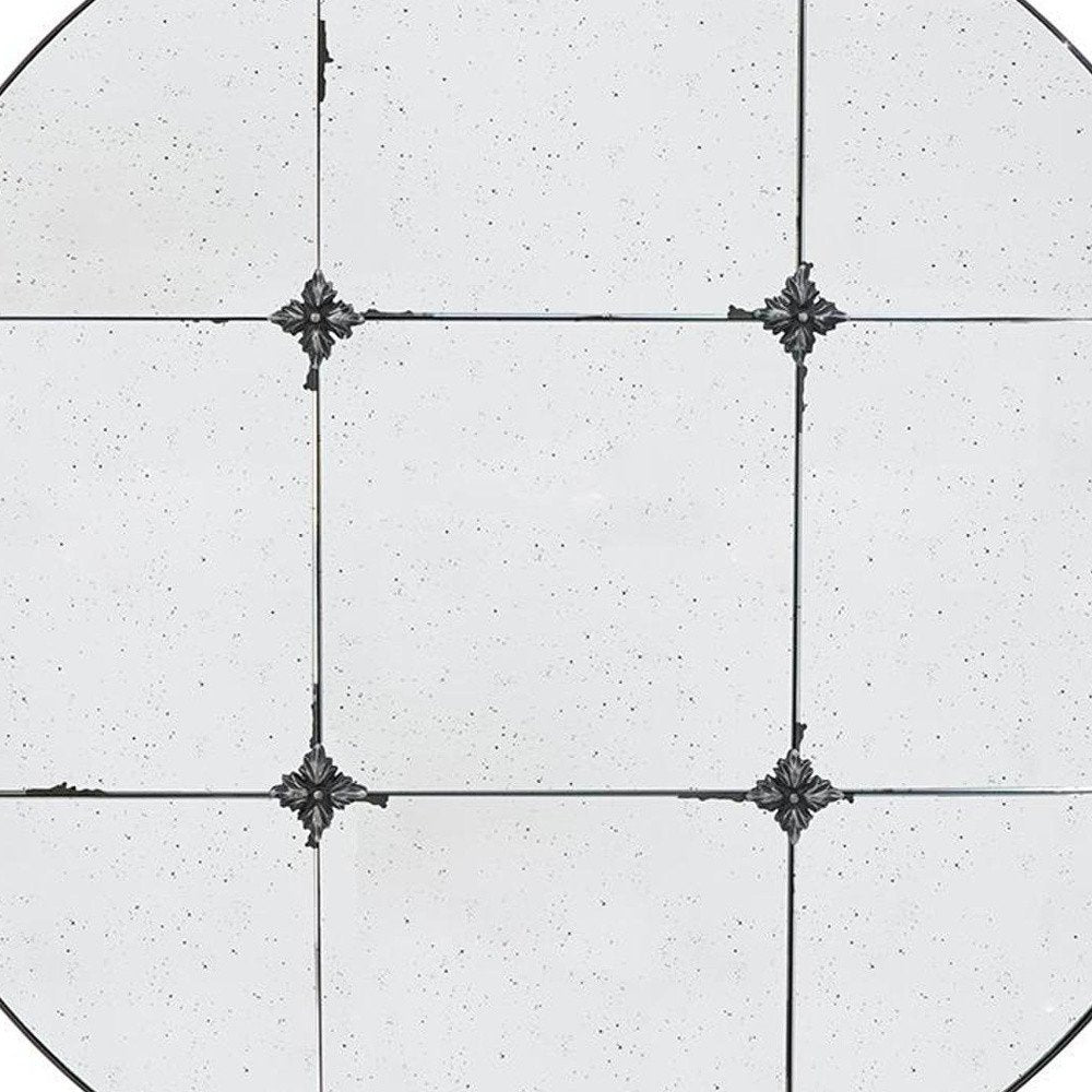 Beautify your space with this 36-inch black round iron framed antiqued glass accent mirror. An antiqued and distressed mirror finish gives this piece lots of vintage charm. Framed with iron, this mirror will bring practical application and fashionable design to your space, adding some traditional flair to your decor. This mirror will be a great useful addition to your home but will also help elevate the space in the room. Add this exceptional quality mirror to your space for a beautiful reflection and a bit of elevated style. 35.8-inch h x 35.8-inch w x 1.5-inch d.
