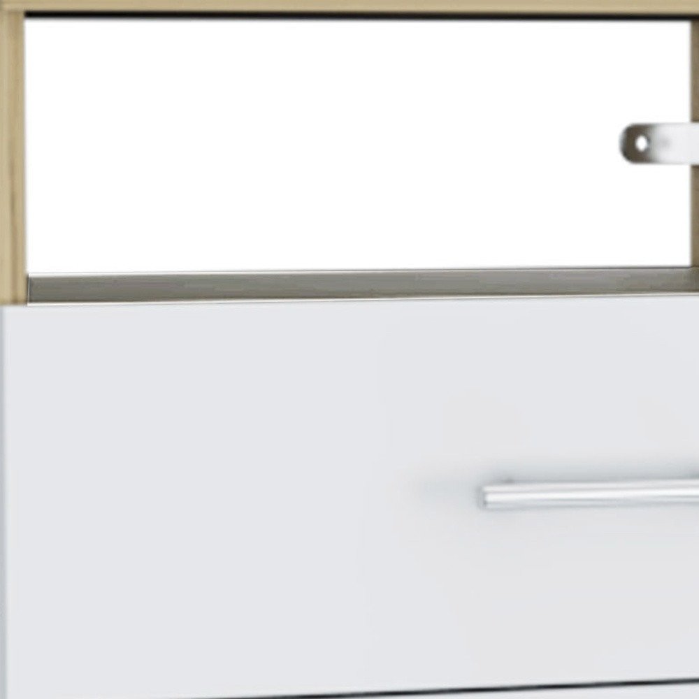 36" White and Natural Four Drawer Combo Dresser With Open Shelf