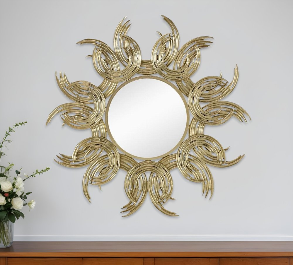 37" Gold Abstract Sunburst Iron Framed Accent Mirror