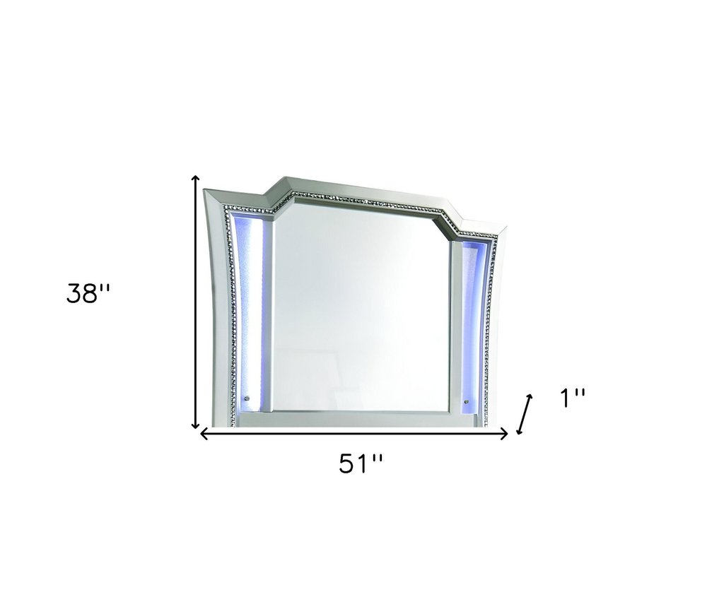 This 38-inch champagne abstract wood framed mounted dresser mirror adds the finishing touch to your bedroom. Framed with wood, this mirror will bring practical application and fashionable design to your space, adding some contemporary flair to your decor. Features quality craftsmanship in every facet that ensures durability and long-lasting wear. This mirror is the perfect choice to update your bedroom and create a sanctuary of comfortable and inviting relaxation for your home for years to come. Produced with premium quality glass for a beautiful reflection, this mirror will provide an exceptional visual experience. 38-inch h x 51-inch w x 1-inch d.