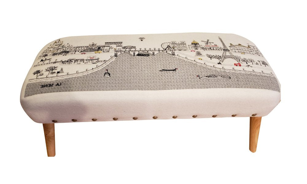 Get ready to relax with this 38-inch cream wool and brown ottoman. Fine detailing such as nailhead trim give this ottoman a rich and elegant look. Upholstered in high-quality wool, it features a plush fill composition for added comfort. The stylish rectangular shape makes it versatile for any living space. With sturdy legs in a complementary brown hue, this piece is designed for both durability and aesthetic appeal. Its neutral cream color harmonizes effortlessly with various decor styles, enhancing your interior ambiance. 17-inch h x 38-inch w x 16-inch d.