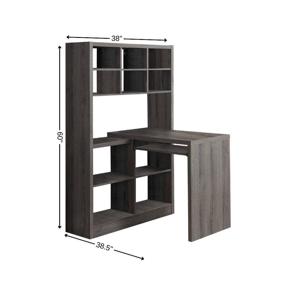 Look like an executive when you add this 38-inch taupe l shape computer desk to your office space. Built to last, this sturdy desk is designed for comfort and efficiency for years to come. With its modern style and manufactured wood construction, this desk features a bookcase for extra storage, ensuring a clutter-free workspace. The taupe top adds a touch of elegance, while the standard base provides stability. Ideal for enhancing your work environment, this desk offers both functionality and style in one. 60-inch H x 38-inch W x 35.5-inch D