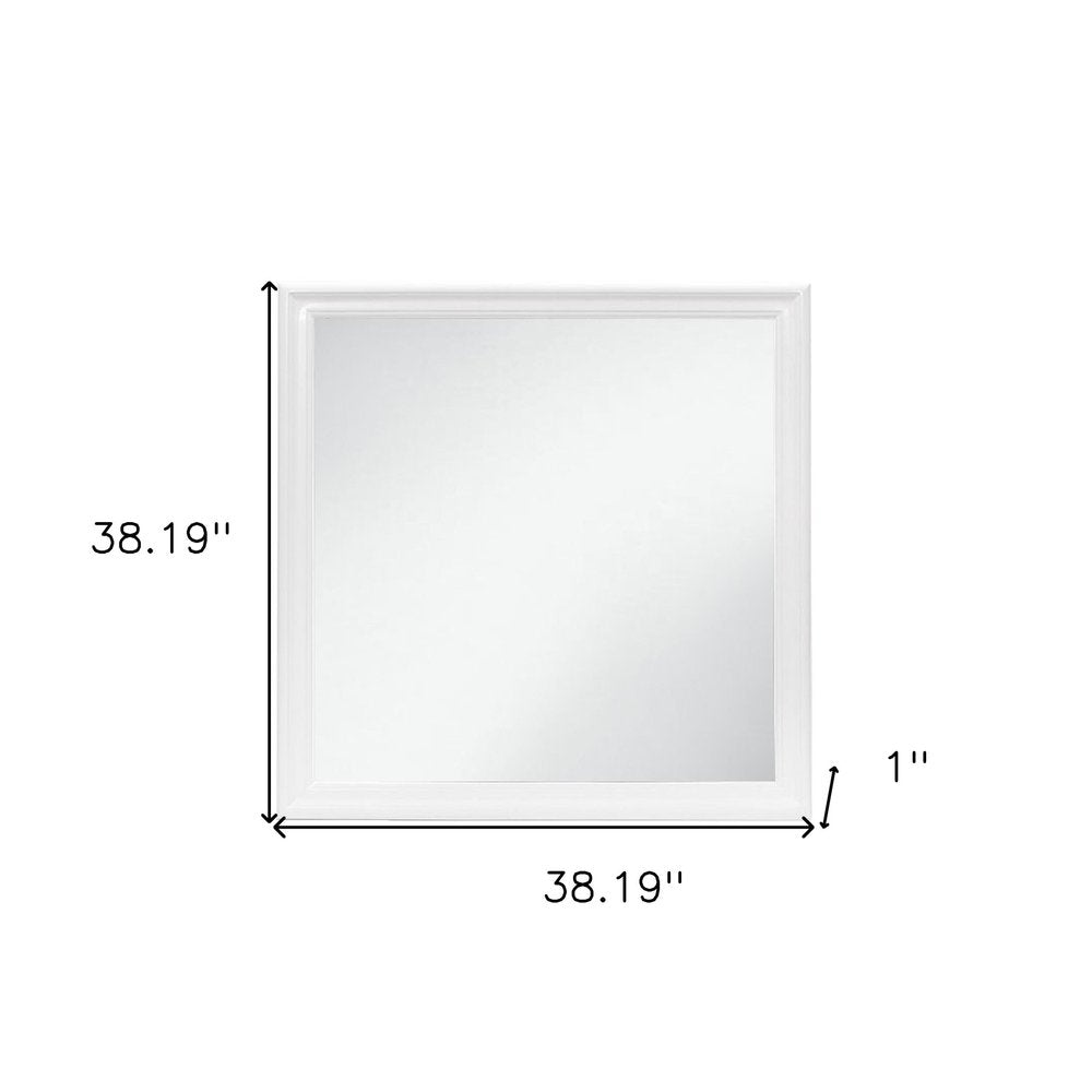 38" White Square Wood Framed Accent Mirror
