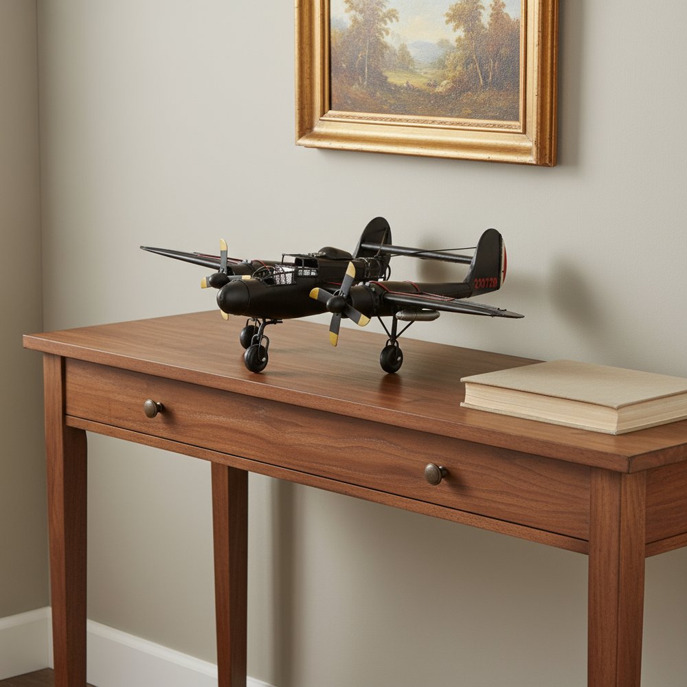 4" Black and Red Metal Hand Painted P-61 Black Widow Model Airplane