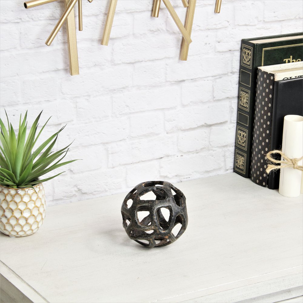 Add an air of fashion to your room and rejuvenate the space with this 4-inch black cast iron hand painted tabletop sculpture. This black hued piece represents high quality, expertly made from high grade cast iron. It's a perfect addition for those who love an up-to-the-minute look and feel. 4-inch h x 4-inch w x 4-inch d.