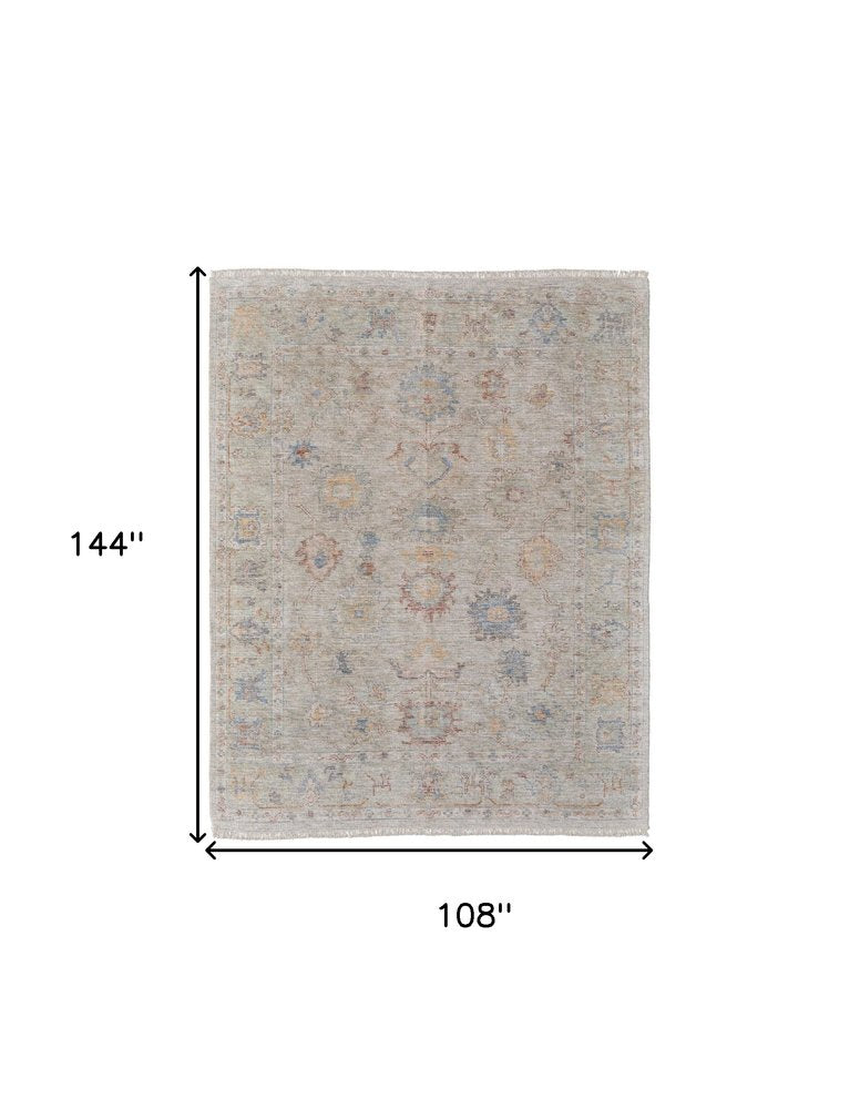 4' X 6' Tan Brown and Blue Floral Hand Woven Distressed Area Rug With Fringe