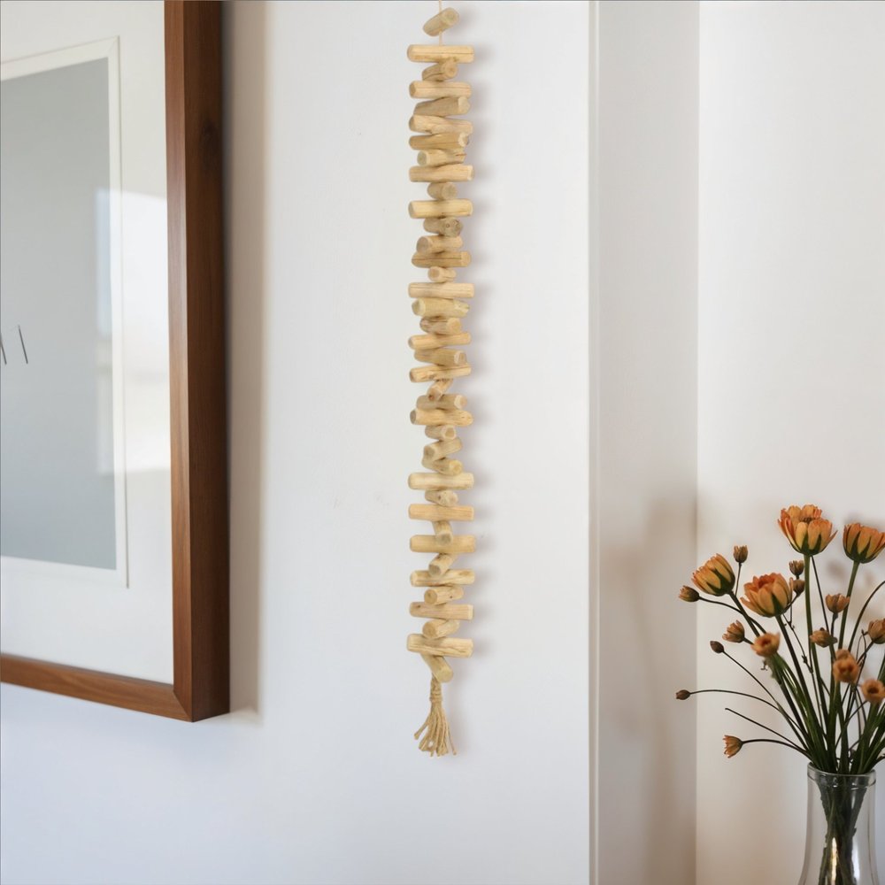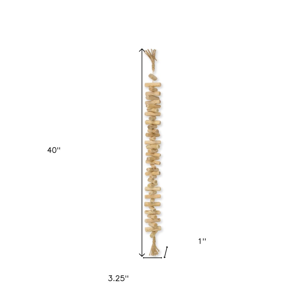 Bring some sizzle to your space with this eye-catching 40-inch brown wood rods and rope decorative tassel. The design and natural coloring of this high quality rope and wood accent will lend a casual coastal, even Bohemian design sense to your space. This charming and versatile decor can be used as a tabletop decorative accent and can also be hung or strung. It's a perfect addition for those who love an up-to-the-minute look and feel 40-inch h x 3.25-inch w x 1-inch d.