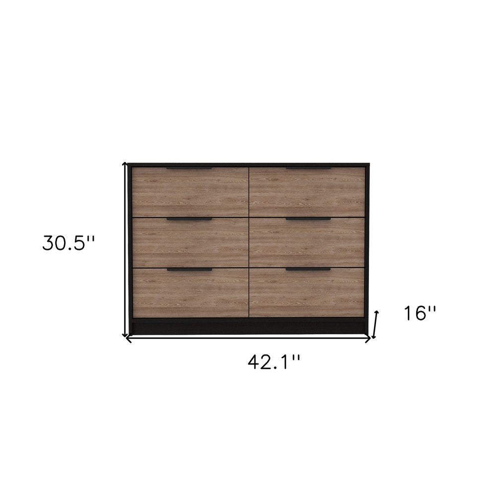 42" Brown and Black Six Drawer Double Dresser