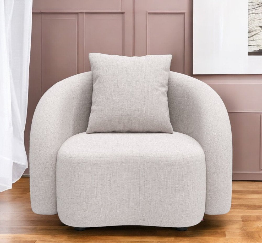 Transform your outdoor sanctuary into a haven of comfort and flair with the eye-catching 42-inch beige outdoor accent chair with beige cushions, a perfect spot to unwind and soak up the ambiance. Allow the durable outdoor worthy fabric covered chair to leave a lasting impression that beautifully embodies your individuality. The neutral beige will add a pop of chic style that harmoniously complements your unique aesthetic. Enjoy the good life everyday with this fashionable outdoor seating option. 32.3-inch h x 42-inch w x 37-inch d.