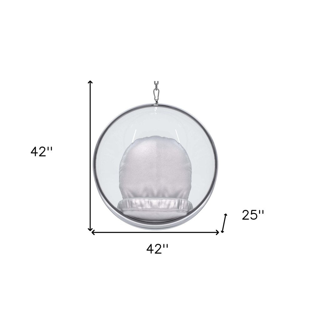 This 42-inch silver faux leather balloon chair is the perfect decorative yet functional accessory for your home. Built to last this balloon chair is finished in solid silver faux leather to give your room a great update. Giving the chair stability and structure, the inner frame is constructed with high quality acrylic and features a cushion back that comes complete with soft and comfortable cushioning. 42-inch h x 42-inch w x 25-inch d.