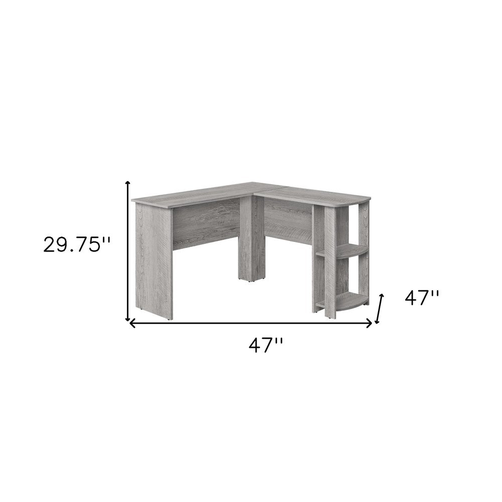 This 47-inch gray wood corner computer desk will help to turn your office space into an executive suite. This 47-inch gray wood corner computer desk is a great way to bring maximum amount of desk in a minimal amount of space to your living room, home office or bedroom. Built to last, this sturdy desk is designed for comfort and efficiency for years to come. 29.75-inch h x 47-inch w x 47-inch d.