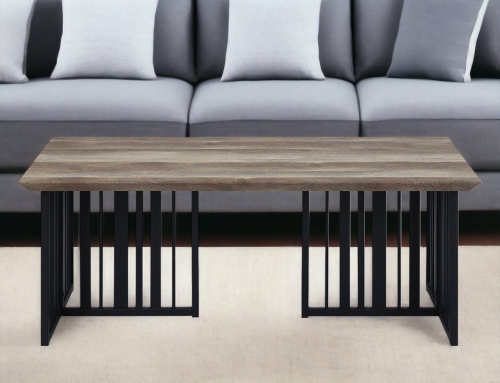 47" Oak and Black Wood And Metal Distressed Frame Coffee Table