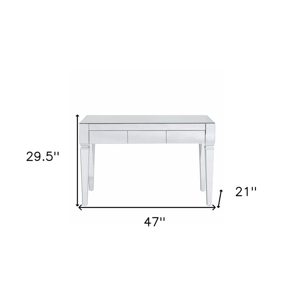 47" Silver Mirrored Writing Desk With Three Drawers