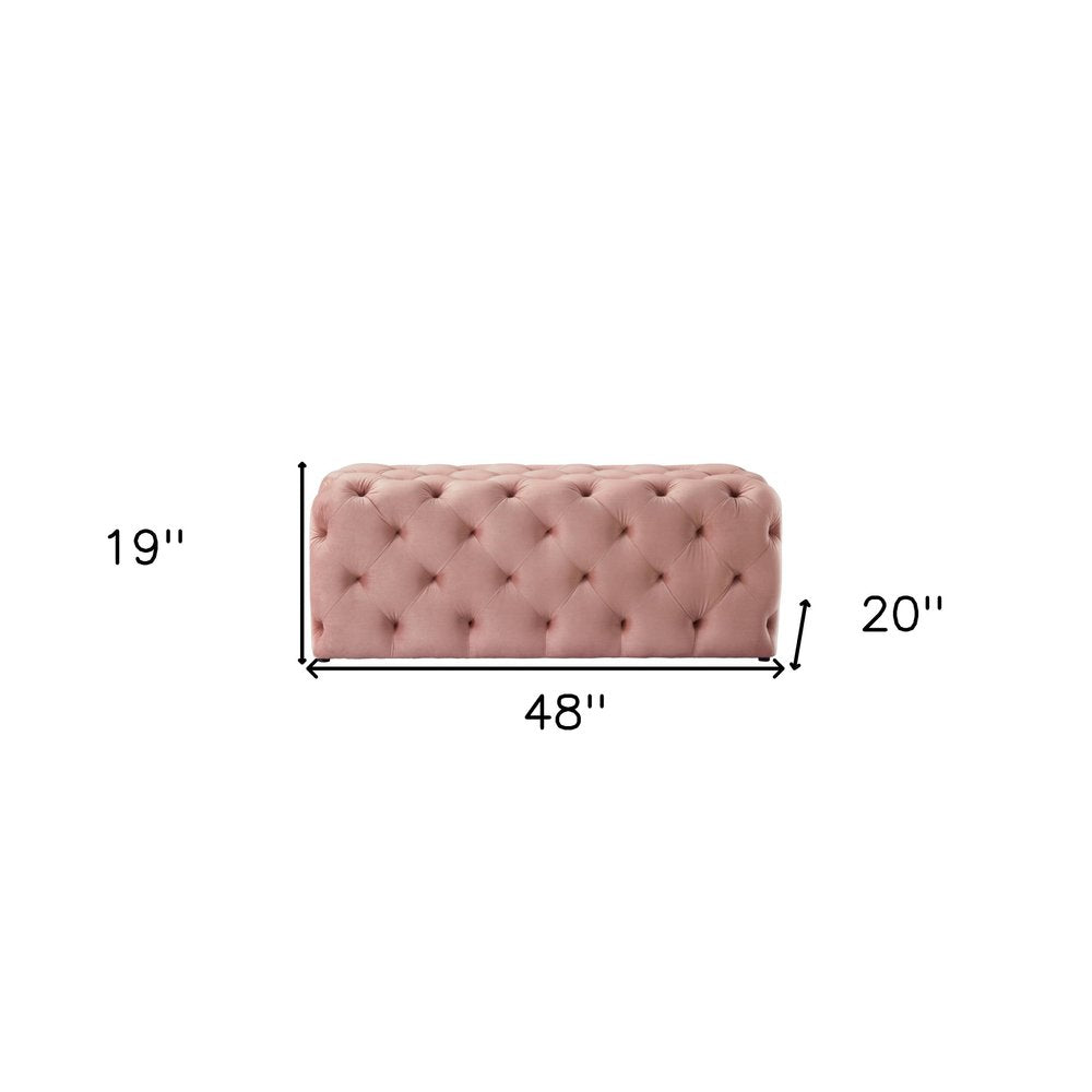 Add a good looking decorative accent to your space that is also practical for seating. A black solid wood frame is finished off with a blush upholstery seat that is the epitomy of quality construction and design. Expertly upholstered with padding in a soft solid color velvet, this bench is as comfortable as it is good looking. Ideal for entrance foyer, hallway, or laundry room. This bench is a great place store your keys, put on your shoes, or be a catchall on your way in or out. Benches don't have to be unsightly. Increase your seating and the fashion quotient of your room all at the same time with this hard wearing, versatile, and good looking bench. 19" H x 48" W x 20" D