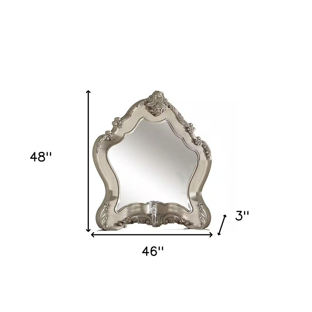 This 48-inch white abstract wood framed mounted dresser mirror adds the finishing touch to your bedroom. Framed with wood, this mirror will bring practical application and fashionable design to your space, adding some traditional flair to your decor. This mirror will be a great useful addition to your home but will also help elevate the space in the room. This mirror is the perfect choice to update your bedroom and create a sanctuary of comfortable and inviting relaxation for your home for years to come. Produced with premium quality glass for a beautiful reflection, this mirror will provide an exceptional visual experience. 48-inch h x 46-inch w x 3-inch d.