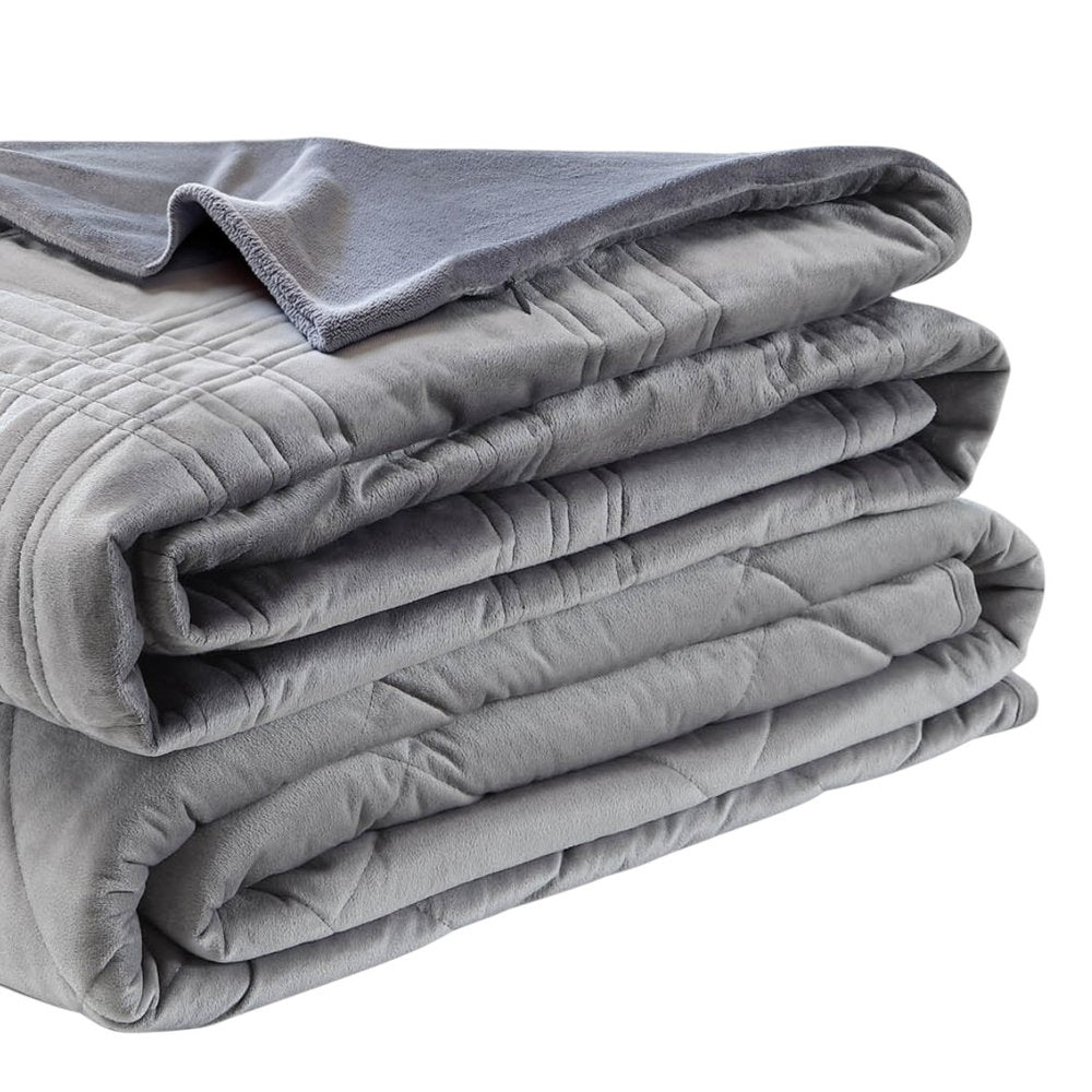 48" X 72" Gray Velvet Quilted Weighted Blanket