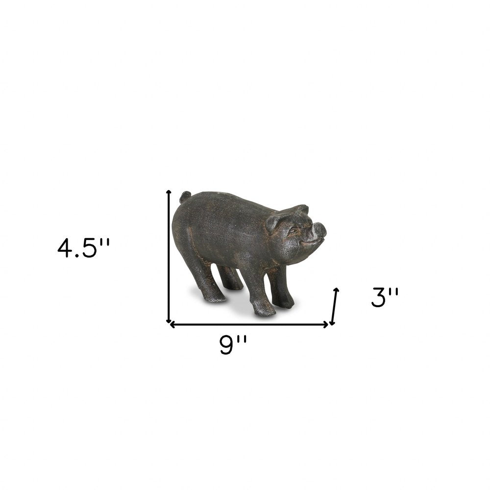 Unique and decorative, this 5" black cast iron metal pig hand painted figurine sculpture will leave a lasting impression. This black colored piece is made from high grade metal. Accessorize your room with this chic figurine in a black coloration. Bring a little bit of the farm indoors with this good looking pig accent. It's a perfect addition for those who love an up-to-the-minute look and feel. You can be certain that you'll be leaving an impression with this unique piece. 4.5" H x 9" W x 3" D