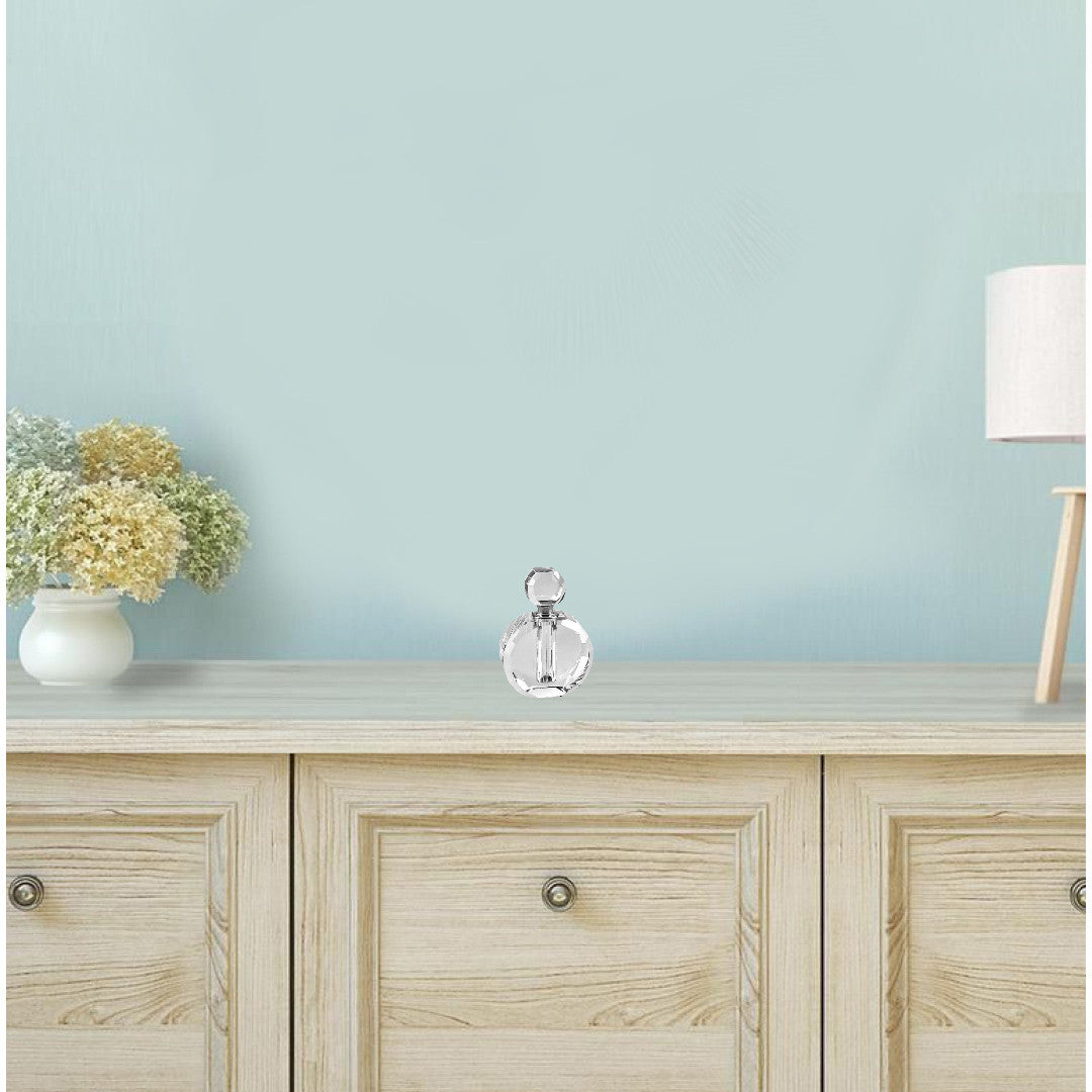 The 5-inch clear crystal decorative perfume bottle is the perfect decorative accessory. This sophisticated perfume bottle is crafted from solid crystal glass. A mix of smooth surface and faceted cuts give this bottle a beautiful and modern look. Ready to be displayed on your dresser, counter, or vanity, this decorative and re-fillable bottle will add a touch of sparkling luxury to your space. 4.75-inch h x 1.75-inch w x 3.25-inch d.