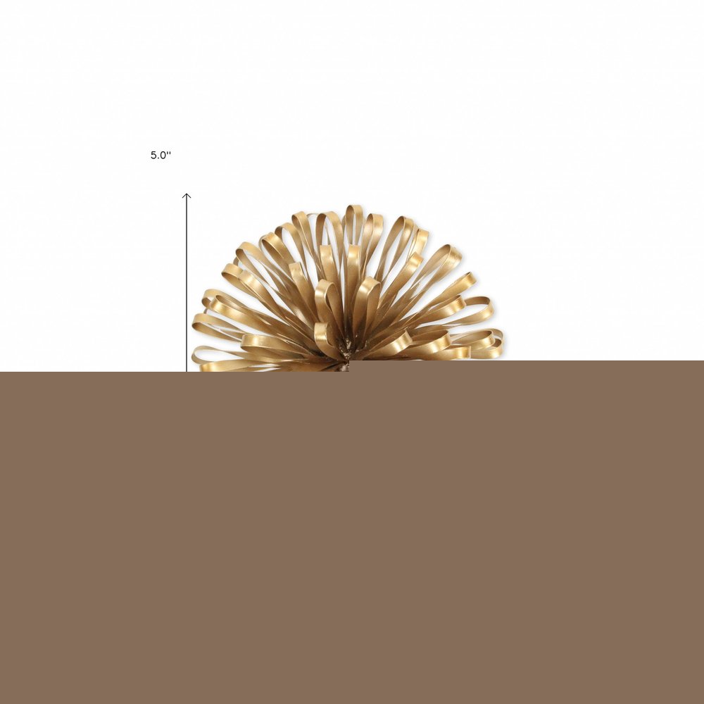 This 5" gold metal abstract hand painted sculpture will add a beautiful decorative accent to your decor. This gold colored piece is made from high grade metal. Accessorize your room with this chic sculpture in a gold coloration. It's a perfect addition for those who love an up-to-the-minute look and feel. You can be certain that you'll be leaving an impression with this unique piece. 5" H x 10" W x 10" D