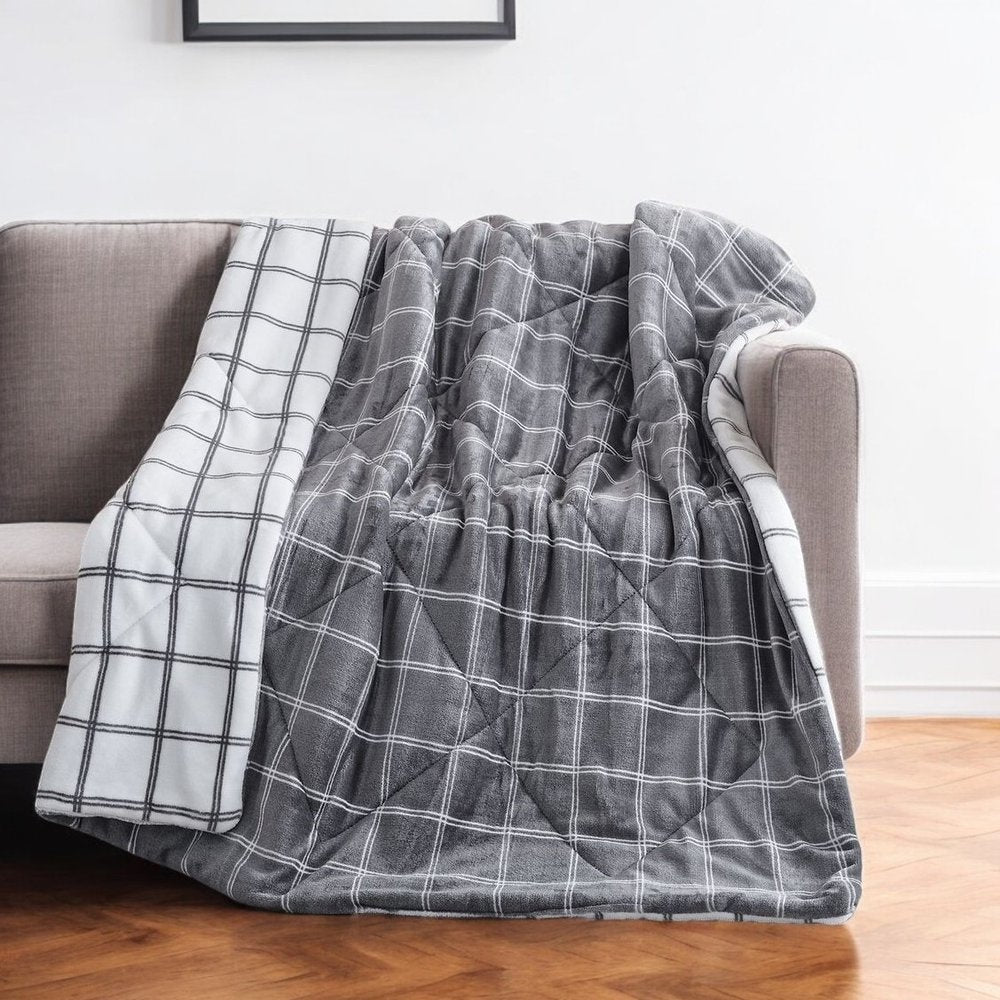 Whether you're curling up for movie night or you need an extra layer of warmth as you drift off to sleep, this 50-inch x 60-inch gray and white velvet quilted plaid plush throw blanket is the perfect solution. This plush throw is cozy soft beyond belief and oh-so-giftable. Features an intricate quilt stitch plaid pattern. Made from velvet this blanket will make a great addition to any room it's added to. Layering your furnishings with a decorative throw has the ability to awaken a tired living room or elevate the design of your bedroom simply by providing elements of color and texture that weren't there before. This cozy throw blanket makes the perfect add-on to movie nights and lazy afternoons. 60-inch h x 50-inch w x 2-inch d