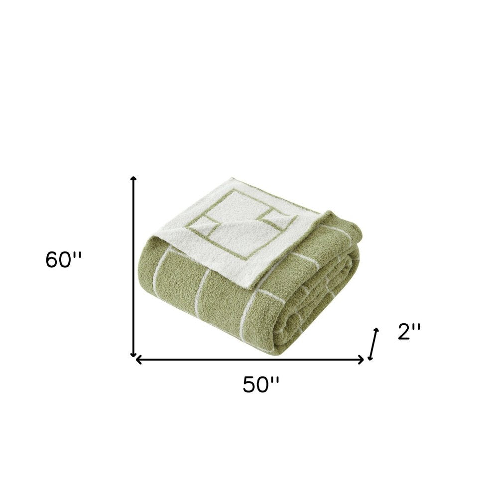 50" X 60" Green and White Fleece Knitted Geometric Plush Throw Blanket