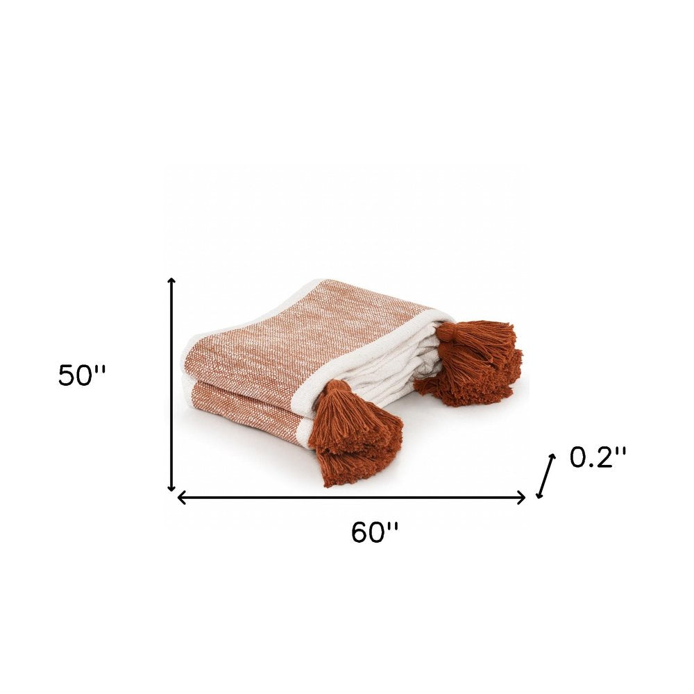 50" X 60" Orange Woven Cotton Striped Throw Blanket with Tassels