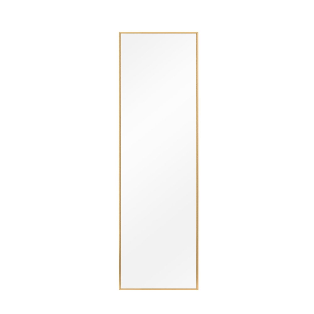 The frame of this mirror is made from metal which has a gold color to it. Framed with metal, this mirror will bring practical style and fashionable design to your space. Its transitional style makes this mirror a favorite for bringing some flair to your decor. This mirror will be a great useful addition to your home but will also help elevate the space in the room. 51.2-inch h x 15.7-inch w x 0.8-inch d