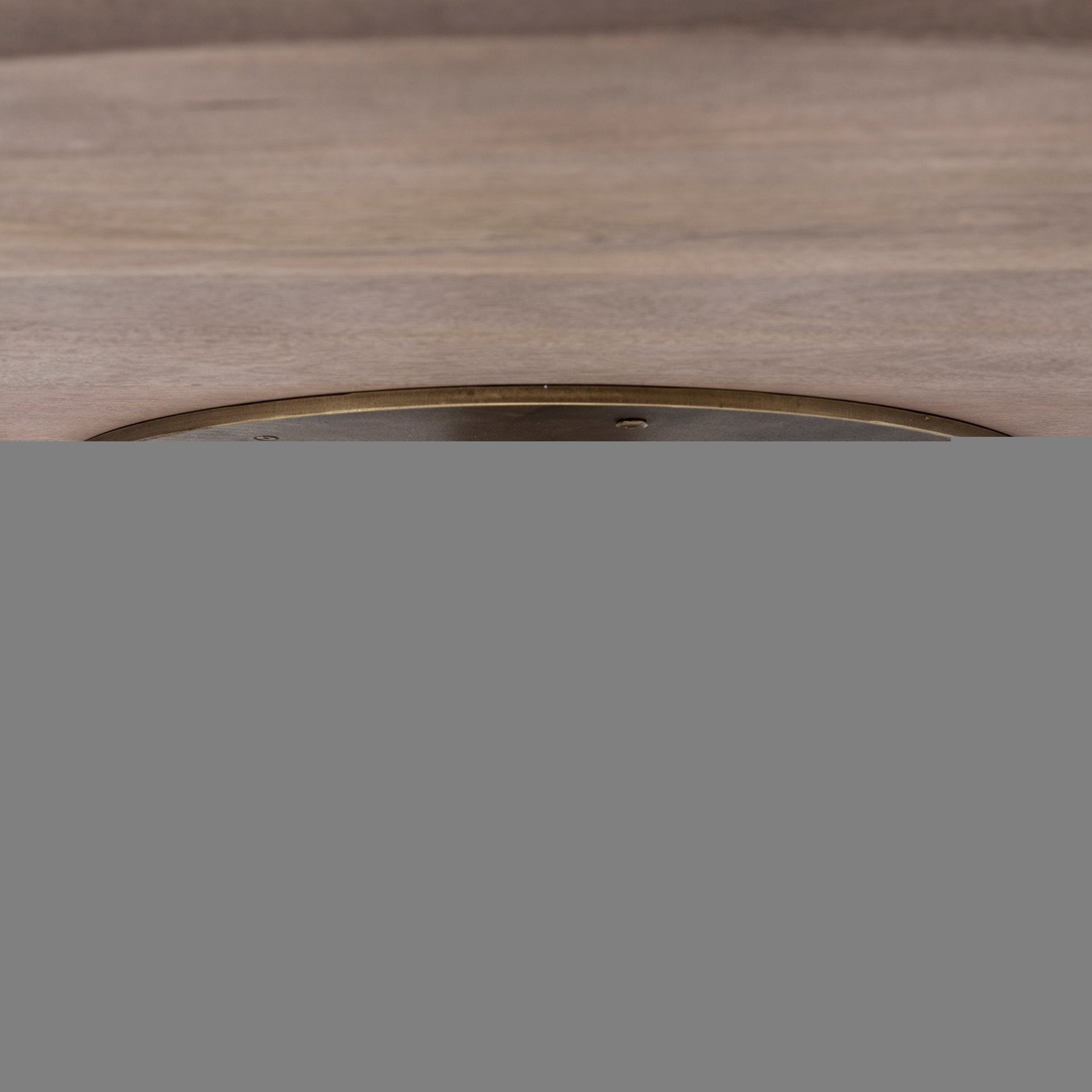 54" Brown And Gold Rounded Solid Wood And Metal Pedestal Base Dining Table