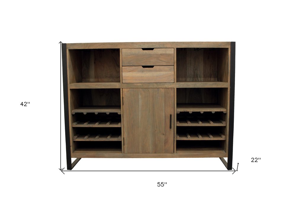 55" Gray and Black Solid Wood Sled Console Table With Storage With Storage