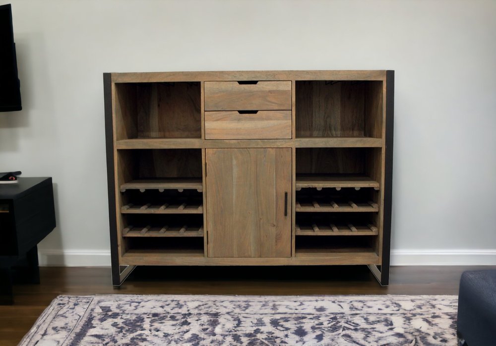 This 55-inch gray and black solid wood sled console table with storage with storage is a high-quality, long-lasting piece of furniture that you can enjoy for years to come. This rectangular table has clean lines and plenty of surface area. This unit has a gray genuuine hardwood tabletop. The sled is made of durable, solid metal. Ideal for living rooms, bedrooms, home offices, and lounge areas, this console table is not only good looking but multi-functional and practical addition to your space. 42-inch H x 55-inch W x 22-inch D