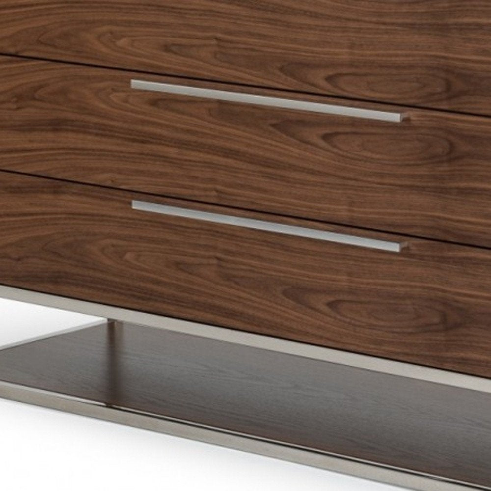 58" Walnut Manufactured Wood Three Drawer Dresser