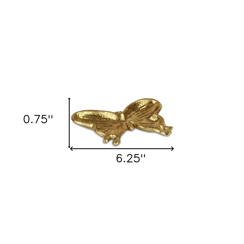 Hand-crafted from cast iron, this butterfly jewelry or trinket tray in a glamorous gold hue is handmade to add a touch of modern elegance to your space. Perfect for holding your keys, coins, jewelry and more. Makes a great gift or chic addition to any room. This nature inspired dish will make an eye catching accent and is a an ideal choice for displaying your prized possessions with style.0.75-inch H x 6.25-inch W x 4.75-inch D