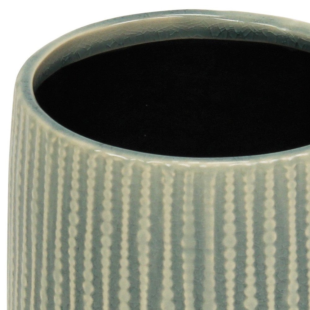 6" Green Striped Ceramic Indoor Outdoor Round Pot Planter