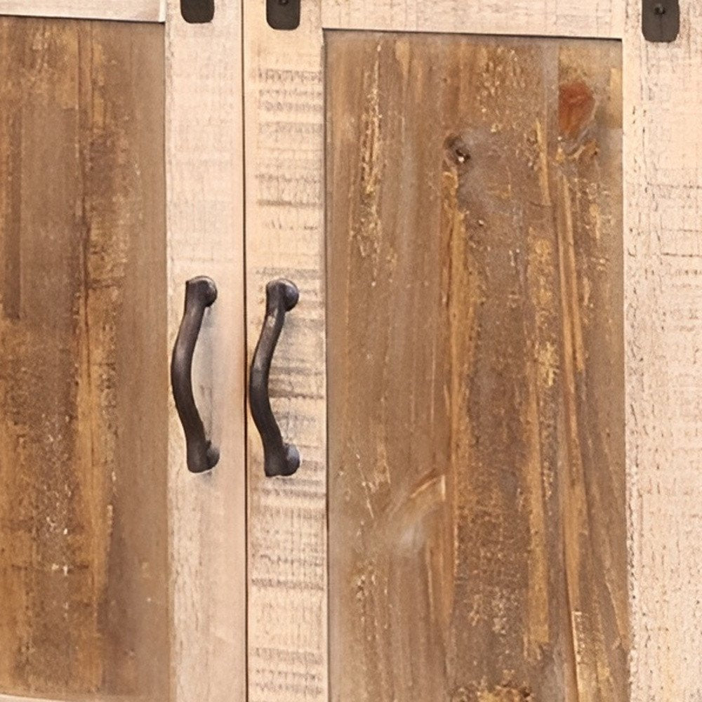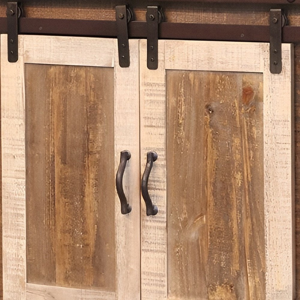 Make a true home theater of your room with this captivating 60" brown solid wood cabinet enclosed storage distressed tv stand. Curated from high quality solid pine wood, this console is natural, beautiful, and built to last. Due to the genuine nature of the wood some natural wood knots, and grain and color variations may occur. N Built-in cable and wire management helps to keep those unseamly wires at bay. Convert your room into a special place with your favorite collectibles and TV accessories that is suitable for living room, bedroom, or office. 34.75" H x 59.75" W x 19" D