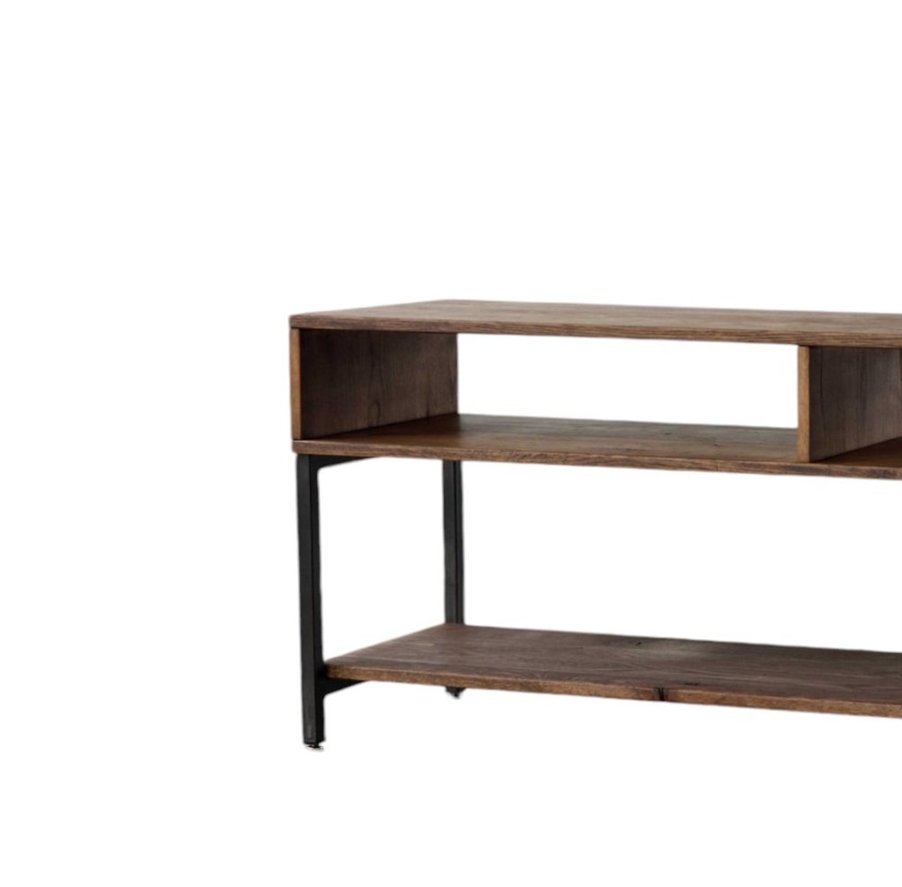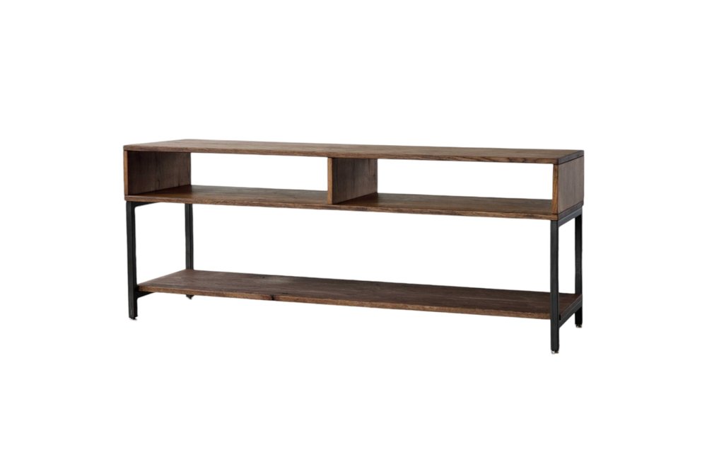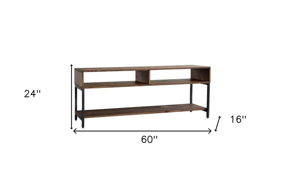 Experience entertainment right in the comfort of your own home with the 60-inch brown solid wood open shelving tv stand. To add to the versatility, this piece features open non-concealed storage that can be used for not only storage but display as well. Convert your room into a special place with your favorite collectibles and tv accessories that is suitable for living room, bedroom, or office. 24-inch h x 60-inch w x 16-inch d