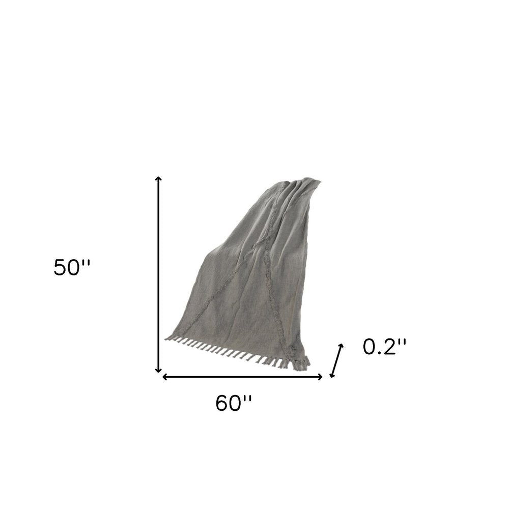 60" X 50" Cream Woven Cotton Throw Blanket with Fringe