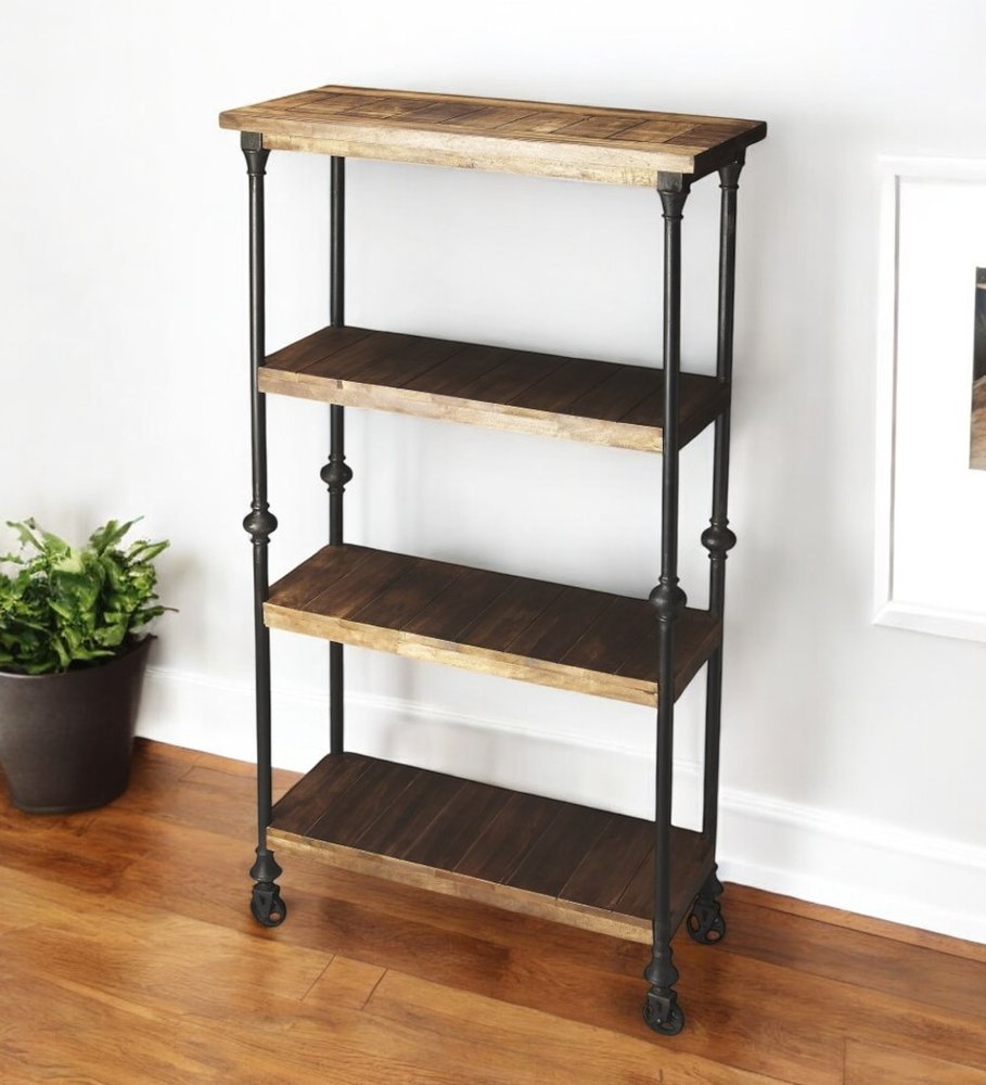 62" Brown Iron and Wood Three Tier Bookcase