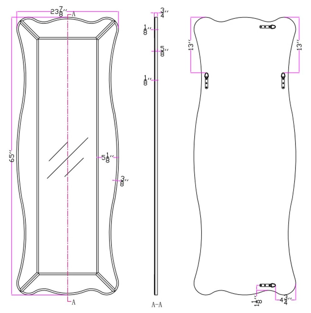 The 65-inch clear novelty glass framed full length hanging mirror will be a fun addition to your bedroom or dressing area. The novelty shaped mirror adds a nice touch of depth and texture and also makes it very practical. This frame works nicely with the full-bodied mirror in the middle. Its modern style making this the perfect versatile accent piece for most any decor. It is an ideal full-length mirror for your bedroom, living room, or dressing room. Perfectly sized for a quick confidence boost with an easy head-to-toe reflection of your daily outfit. 65-inch H x 24-inch W x 0.75-inch D