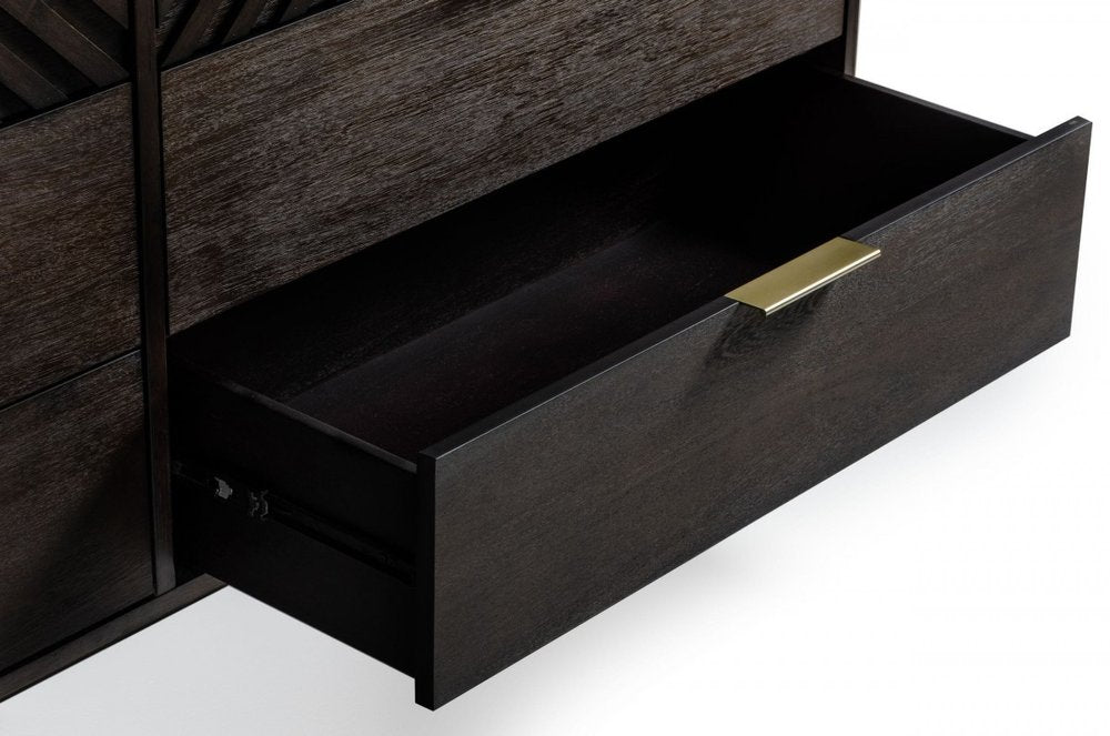 65" Dark Brown Solid Wood Six Drawer Double Dresser