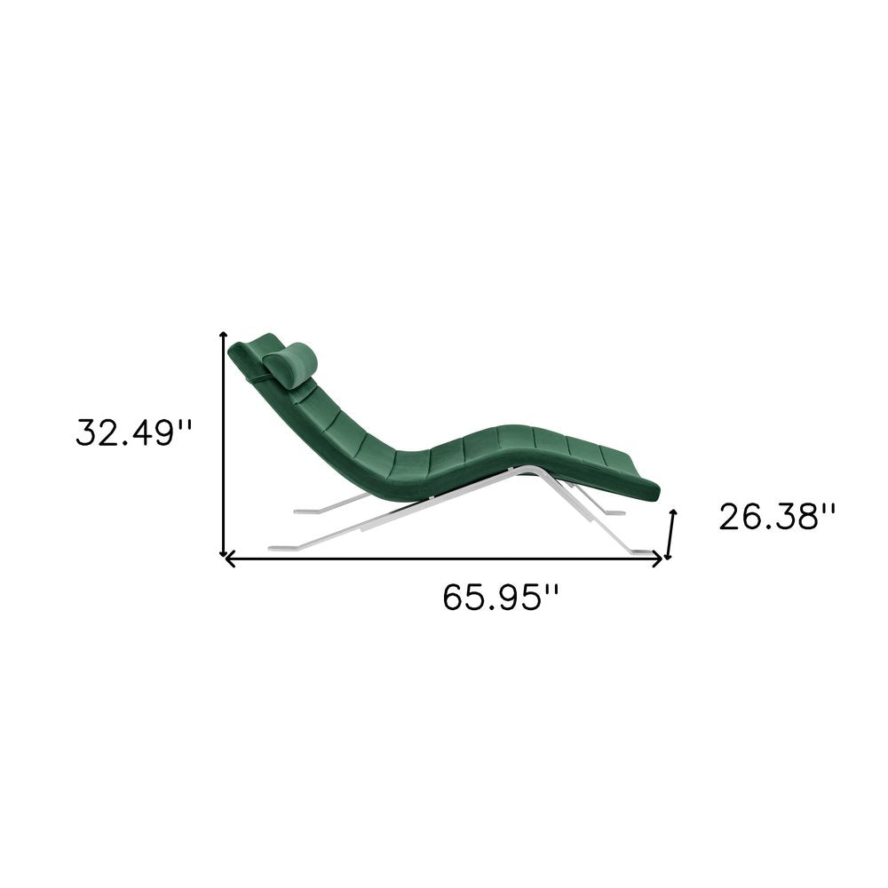 66" Green and Silver Velvet Lounge Chair