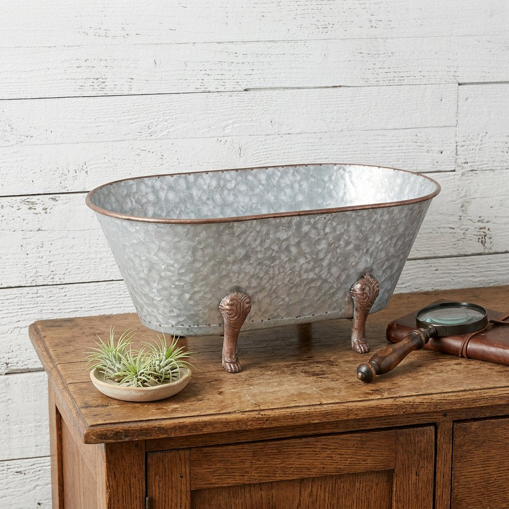The 7-inch gray galvanized metal hand painted tabletop sculpture is the perfect decorative accessory for your home. This gray colored piece is made from high grade galvanized metal. Great to use on its own or mix with other decorations for the perfect look. 7-inch h x 20-inch w x 11-inch d.