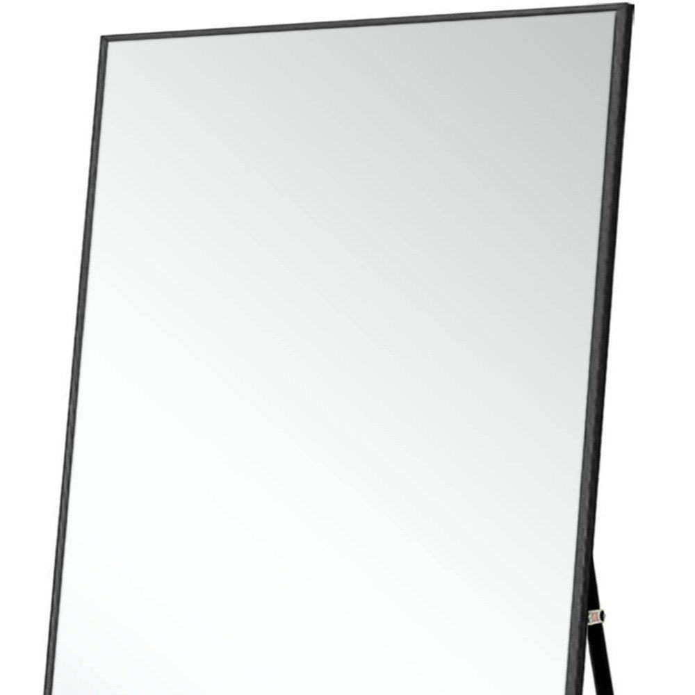 The black metal framed full length hanging mirror will be a fun addition to your bedroom, dressing area, or living room. The large size is not only tall but wide to give you a great view. Its modern style and versatility makes this mirror a favorite for bringing some flair to your decor. Perfectly sized for a quick confidence boost with an easy head-to-toe reflection of your daily outfit. 71-inch H x 32-inch W x 1.2-inch D