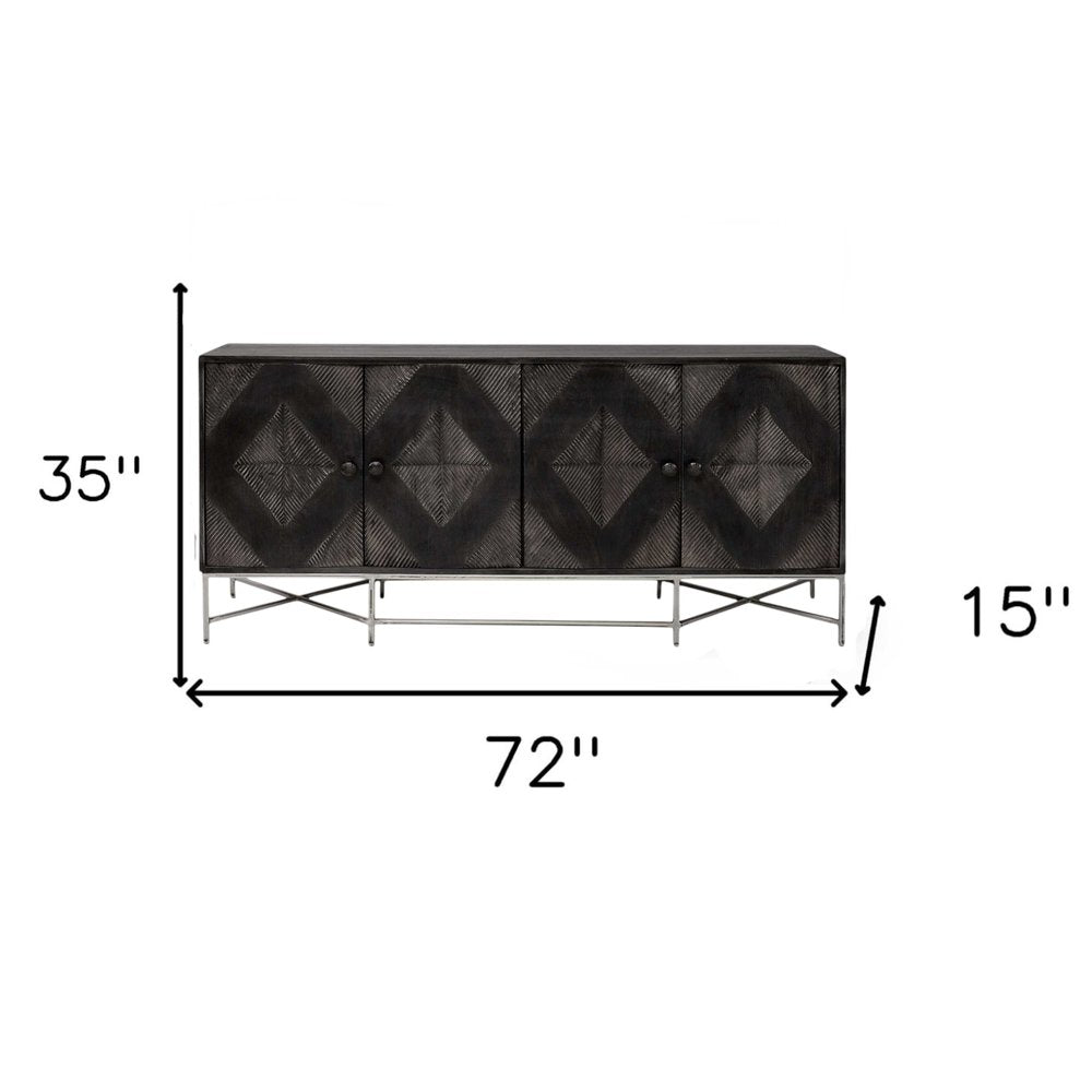 72" Black Solid Wood Sideboard with Four Doors